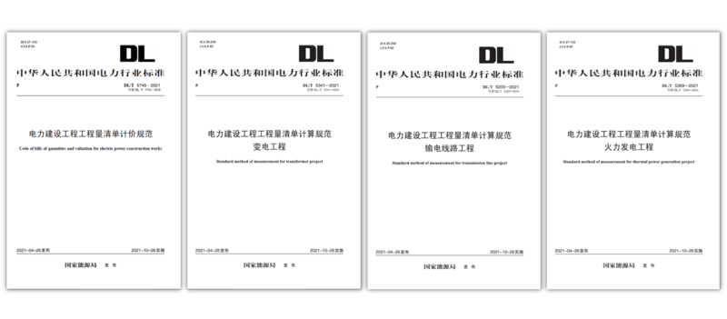 《電力建設工程工程量清單計價規范》(DL/T5745-2021)、《電力建設工程工程量清單計算規范 變電工程》(DL/T5341-2021)、《電力建設工程工程量清單計算規范 輸電線路工程》(DL/T5205-2021)、《電力建設工程工程量清單計算規范 火力發電工程》(DL/T5369-2021)已由國家能源局2021年第3號公告批準發布,并于2021年8月由中國電力出版社正式出版。 如需購買請與中國電力出版社聯系。 咨詢電話:中國電力出版社 高芬